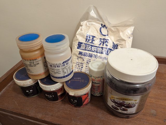 高筋麵粉、調味粉三罐(雞蛋布丁、檸檬、草莓)