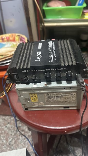 家裡清出了一些電子材料,喇叭音箱、擴大器和顯示幕有斷字的血壓計(功能正常),可當