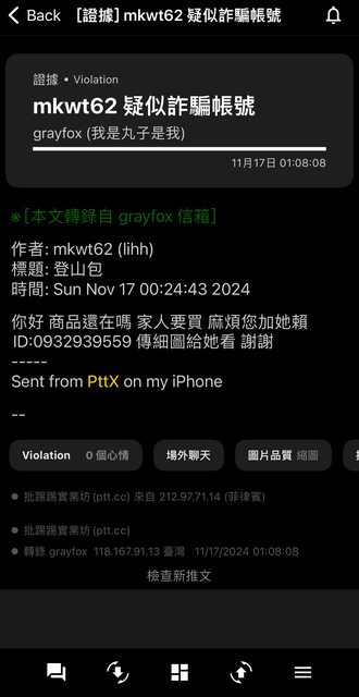 → Arthur818: 詐騙帳號+1 請留意 11/19 18:08