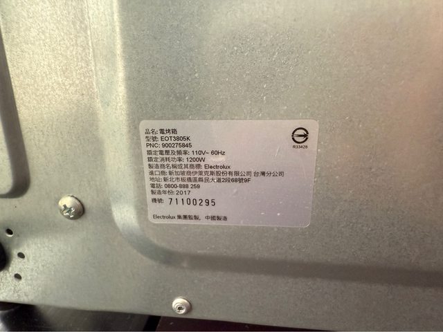 物品名稱:伊萊克斯EOT3805K 電烤箱 15L