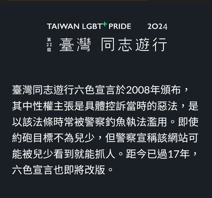 → togg: 遊行的原意早已扭曲了吧? 硬要扯是恐同 11/22 20:00