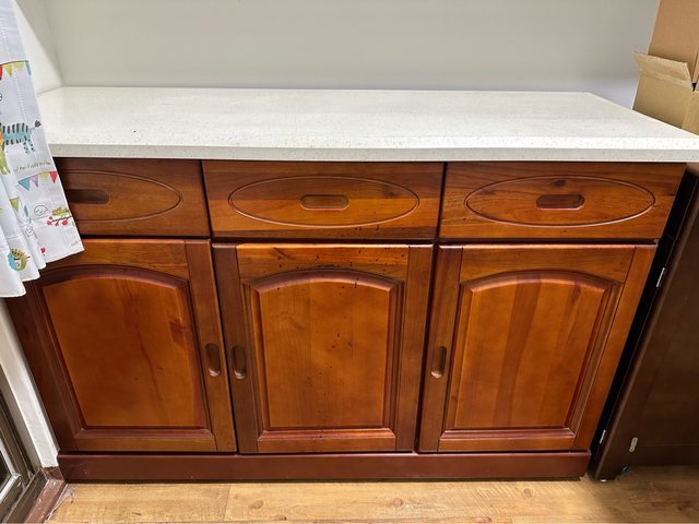 標題[贈送] 標準雙人床架、宜得利床墊、廚房櫃