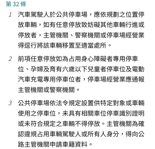 → neon7134: 三分鐘那個是道交條例的規範 停車場法是另一部法律 11/24 12:50