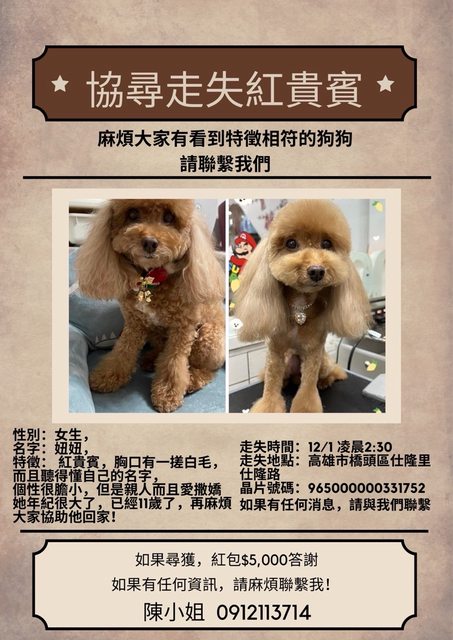 希望大家可以幫我們注意身邊的親朋好友是否有收容到她,我擔心如果被長輩收容,也因