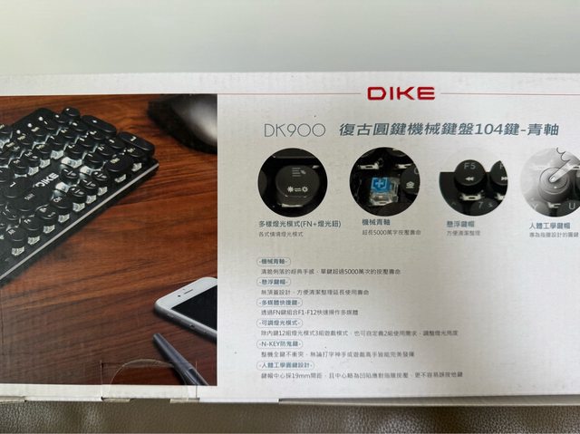 物品名稱:DIKE DK900 復古圓鍵青軸鍵盤