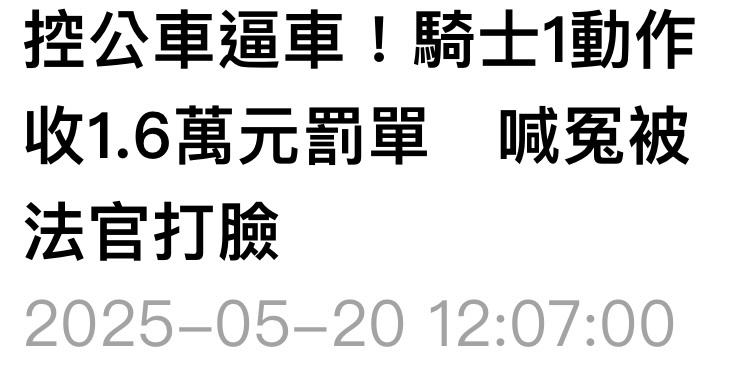 → allisty: 現在在路上看到大車都要自動閃遠一點,證據確鑿還罰不到 05/20 15:31