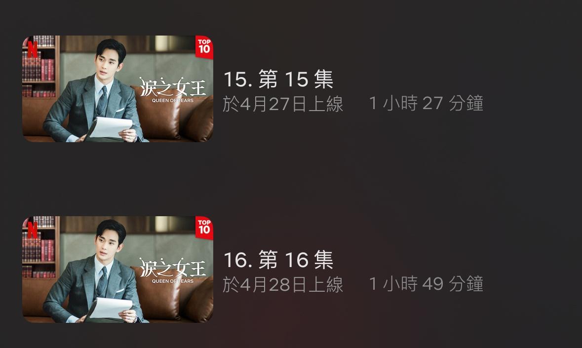 推 andrea062354: 在小紅書看到15集1h27m 16集1h49m 04/23 19:47