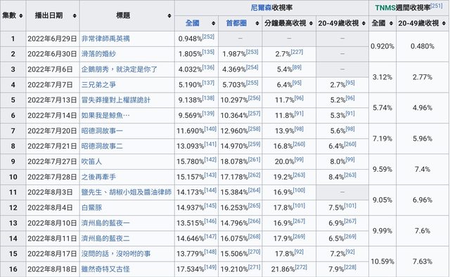 → tieneun: ENA有線台有買的人少,所以一開始收視率低 07/17 16:52