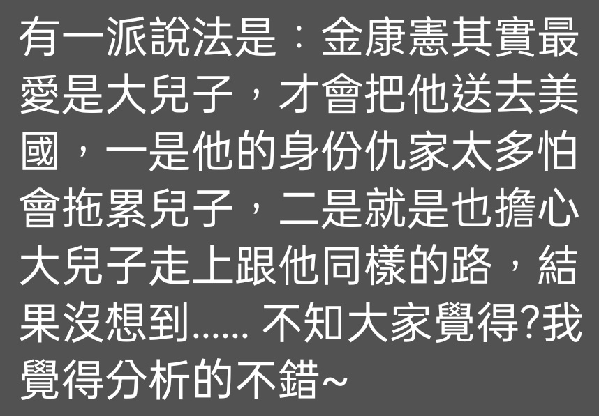推 fishgift: 康憲最愛大兒子也是一個推論,但相關劇情太少XD等看看 08/21 16:03