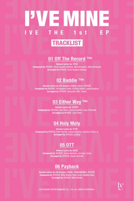 推 ChingNien: IVE好像出道以來每專都有徐智音的作詞 123.193.12.179 09/11 06:33