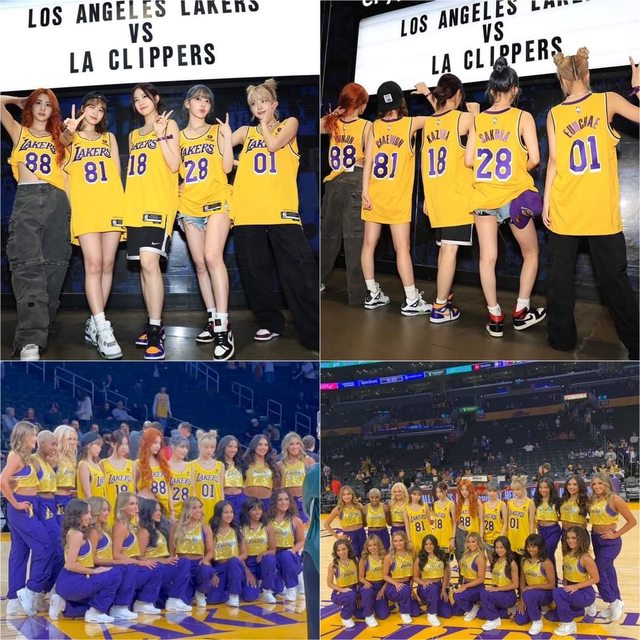 穿著湖人隊服的LE SSERAFIM成員們