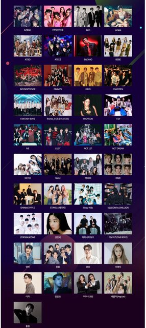演出名單 &TEAM (G)I-DLE 2am aespa ATBO ATEEZ 白虎 BEBE BOYNEXTDOOR CRAVITY DAY6 ENHYPEN FANTASYBOYS fromis_9 孝淵 ITZY IVE LUCY NCT 127 NCT DREAM NCT U NiziU NMIXX RIIZE SHINee STAYC Stray Kids V1LLION by 1MILLION ZEROBASEONE 權恩妃 Dynamic Duo THE BOYZ 永卓 ONETOP 尹尚 李泳知 李笛 張民好 JUJU SECRET Kep1er Paul Kim -- ※ 發信站: 批踢踢實業坊(www.ptt.org.tw), 來自: 110.28.113.58 (臺灣) ※ 文章網址: https://www.ptt.org.tw/KoreaStar/M.1702952416.A.19D