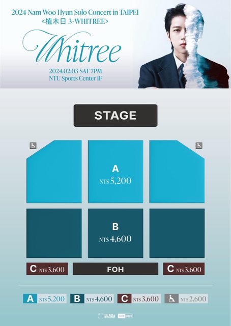 活動票價:座席A區 NT$5,200/座席B區 NT$4,600區/座席C區 NT$3,600區/身心席 NT$2,6