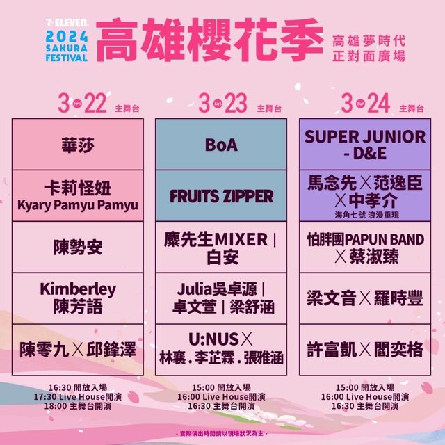 3/22-3/24高雄櫻花季 官宣節目單了 看這個安排 我勢必要衝一波週五看華莎 有人想去禮拜幾的嗎 不要跟我搶XD 1/10中午 準備鎮守電腦前 ----- Sent from JPTT on my iPhone -- ※ 發信站: 批踢踢實業坊(www.ptt.org.tw), 來自: 1.164.163.77 (臺灣) ※ 文章網址: https://www.ptt.org.tw/KoreaStar/M.1704725901.A.3C8