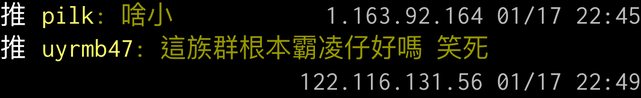 → see1994: 那篇提到團名被水桶 你舉的例子是 223.139.60.244 01/20 01:30