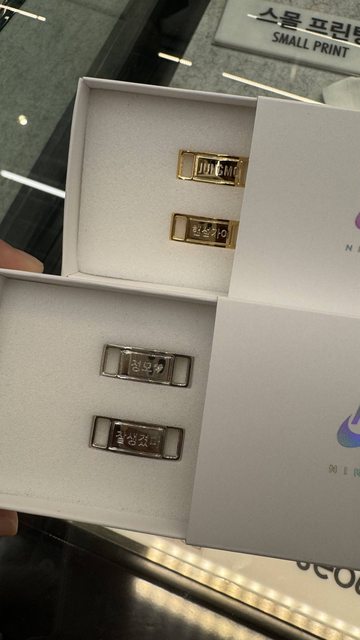於是我們又買了一雙Nike加四個訂製鞋扣,上面寫「政模」「帥氣」「JUNGMO」「handso