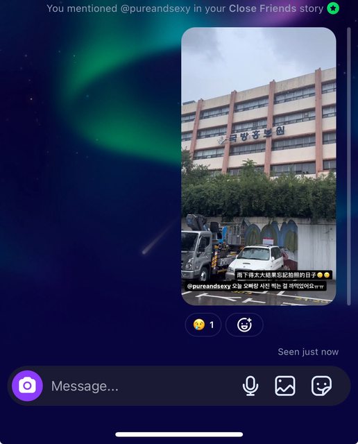 ;殊不知這天下午首爾大暴雨,我跟朋友全身狼狽在軍事基地那個我們覺得是哥昨天描述
