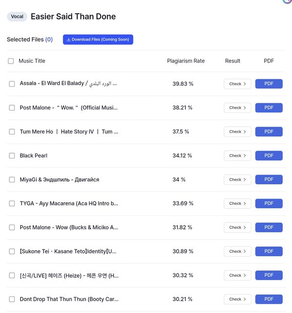 2.資料庫沒有實時更新, 不具備偵測舊歌被新曲抄襲的使用可能