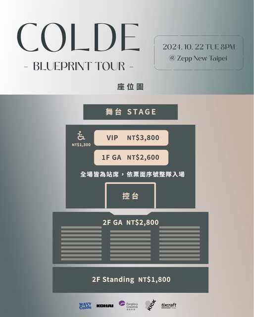 2. 1F VIP優先入場套票NT$3,800序號起始號為1號,1F GA NT$2,600序號起始號為201號