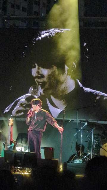 正當他開始喝水準備開唱,我也準備放下怕擋到後面觀眾的時候,電子螢幕上竟然轉播了