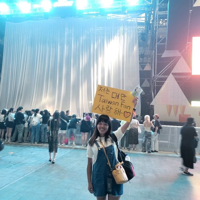 會合後,她帶著我卡好位置,售票演唱會加上分成兩個舞台,我們可以站得蠻前面的,前