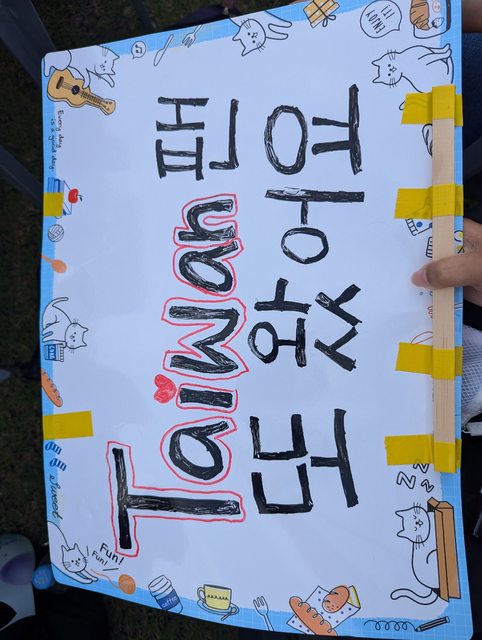當天早上我到文具店買了一塊亮黃色的大紙板,和一支黑色奇異筆,跟一位韓國吐司姐姐