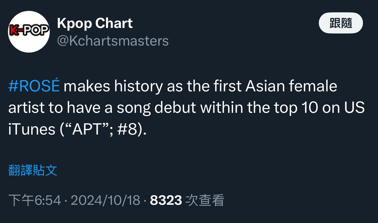 → MOONDAY79: 最好聽的改成Rose的APT了。 147.158.45.240 10/19 14:24
