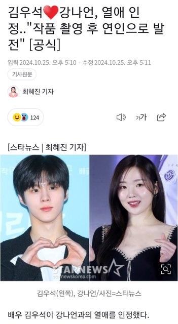 本月25日,金佑錫和姜娜言的戀情被爆出後,兩人立即承認了戀情。金佑錫方面表示:「