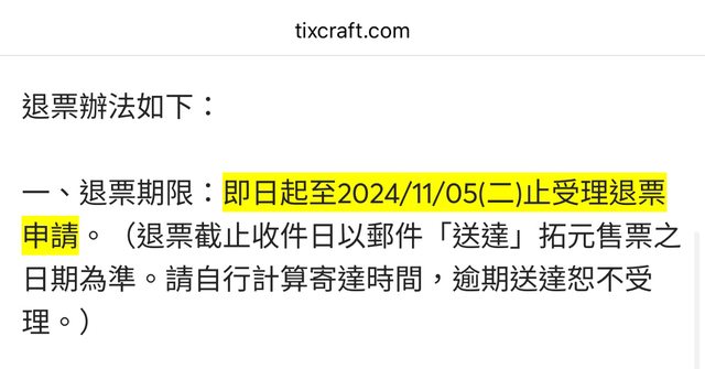 → falllin : 內就申請退票,公告寫“退票申請後 223.137.210.25 10/31 21:33