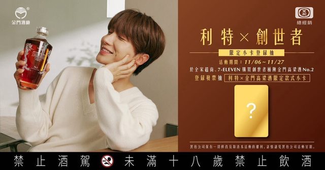 即有機會抽中限量利特 X 金門高粱酒小卡(限量30張)、海報(限量50張)。