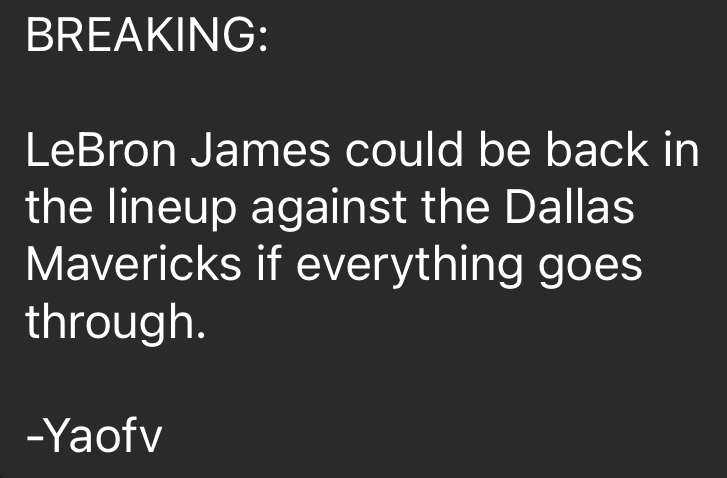 推 LBJKO: 這個唬爛的吧,LBJ下周才會複查 怎麼可能小獨場回來~ 03/15 14:07