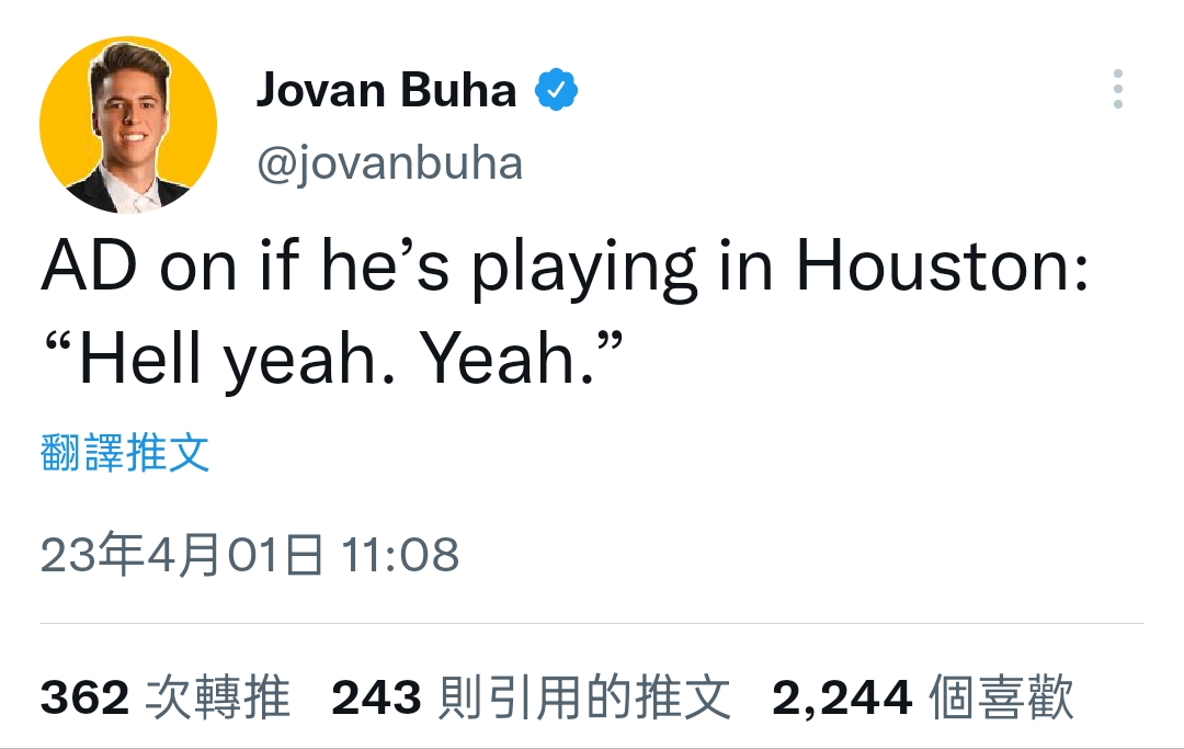 推 Jerry0924: 火箭不管AD有沒有打都要抓下吧 有詹跟DLO沒理由像上次 04/01 12:32