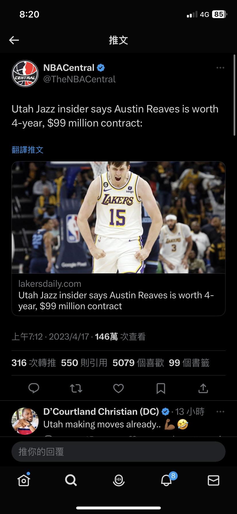 → LBJ9527: 不過如果湖人開的價略低於別隊,但AR也願意接受這價碼, 04/17 20:44
