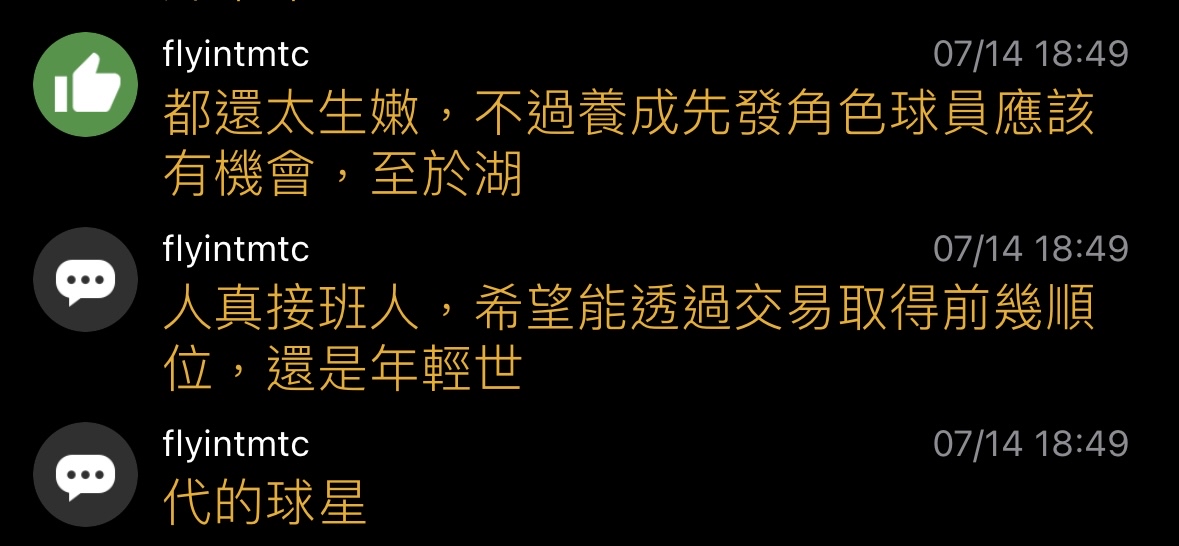 推 ljk476820: flyintmtc確實立場很穩定 自稱湖迷看到球隊低谷時 07/16 18:11