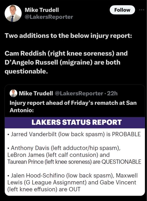 → tonyparker18: 但多位消息人士稱,Lavine顯然更希望前往湖人 12/16 07:32