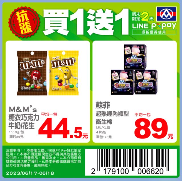 標題[情報] 全聯週末 MM/蘇菲 買一送一