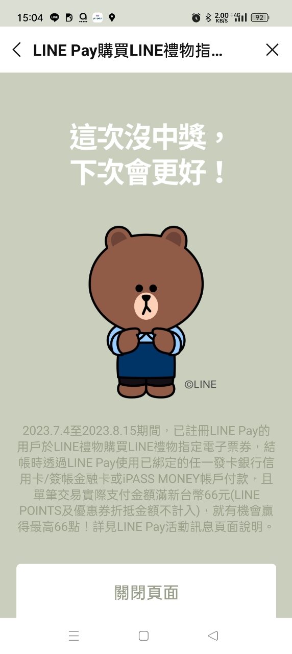 → graphict: 對,linepay提醒,雖然我摃龜 111.240.106.78 07/09 14:40