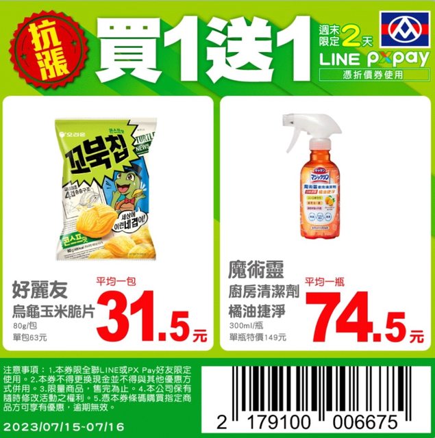 推 Kain88: 單包促銷價33買一送一價31.5XD 1.162.83.64 07/15 19:05