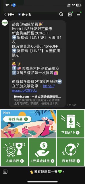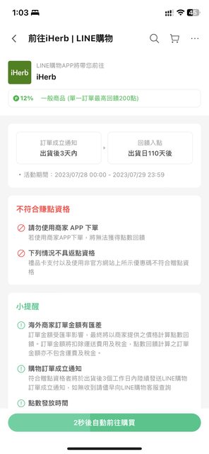 → s0920142: 導購後跳到iHerb的app,開網頁的結帳後 42.72.66.249 07/28 15:18