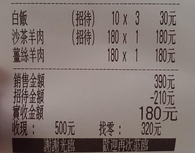 → willism: 如果可先點沙茶羊肉配,吃不完自付$180 114.47.149.188 07/28 18:13