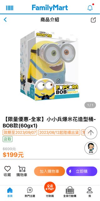 推 antss: 199買小小兵爆米花桶很超值唷!已買!180.217.130.196 08/02 22:50