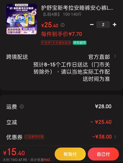 50-10很好用啊,晚安褲一條不到台幣10元