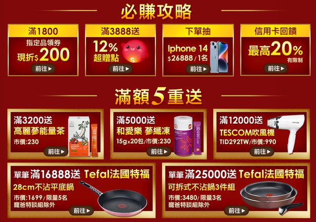 今天有LINE導購10%(單一商品回饋上限300)+滿3888送12%超贈點
