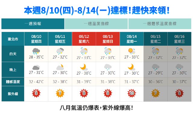 https://www.cwb.gov.tw/V8/C/W/week)之臺北市溫度為準,以確定接下來1週(星期
