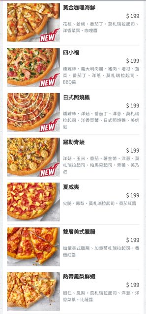推 junieva1118: 達美樂也有限定口味199,平假日都可 125.229.200.10 08/14 22:14