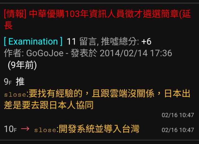 推 cmcmisgod: slose九年前的留言剛好在中華電信子公36.227.133.10 08/23 05:48