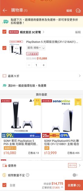 比8月的官方限時特價低一些 又可以搭今天93折券=14775元 https://i.imgur.com/WQ9mupE.jpg