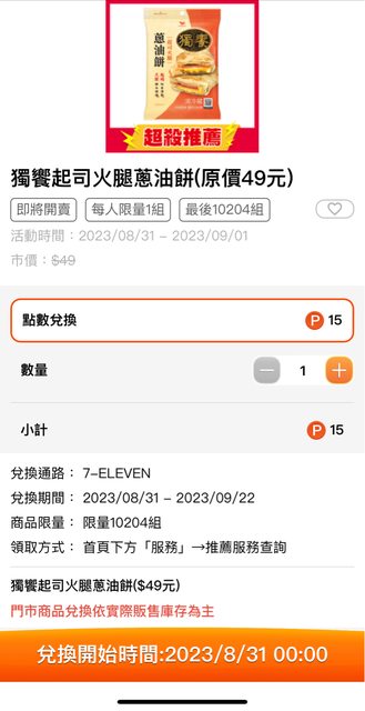 OPENPOINT 8/31凌晨0點 火腿蔥油餅15P https://i.imgur.com/nPA4A2R.jpg