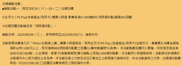 : 門市購買才是即時入帳 提醒一下,相關線上購的點數會晚許久才入帳 https://i.imgur.com/h2vOBLC.png 小時達一邊寫8/30贈、一邊寫9/6贈