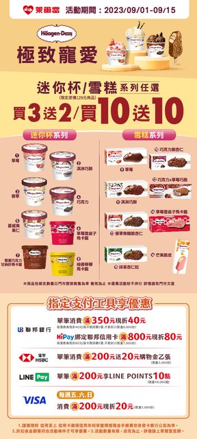 9/1~9/15 萊爾富迷你杯/雪糕任選 (原價需超過129元) 買3送2 買10送10 https://i.imgur.com/Ri24K0S.jpg